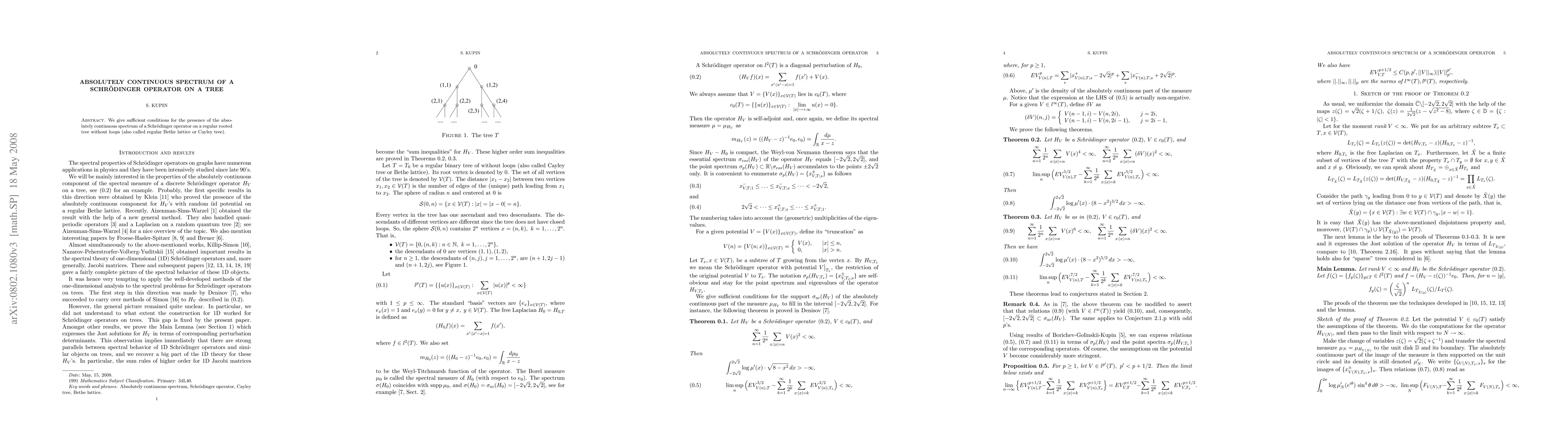 Summary: This paper provides criteria for the existence of absolutely continuous spectrum in Schrödinger operators on regular rooted trees, also known as Bethe lattices or Cayley trees, ensuring no loops are present. The findings contribute to understanding the spectral properties of such operators in tree-based structures.