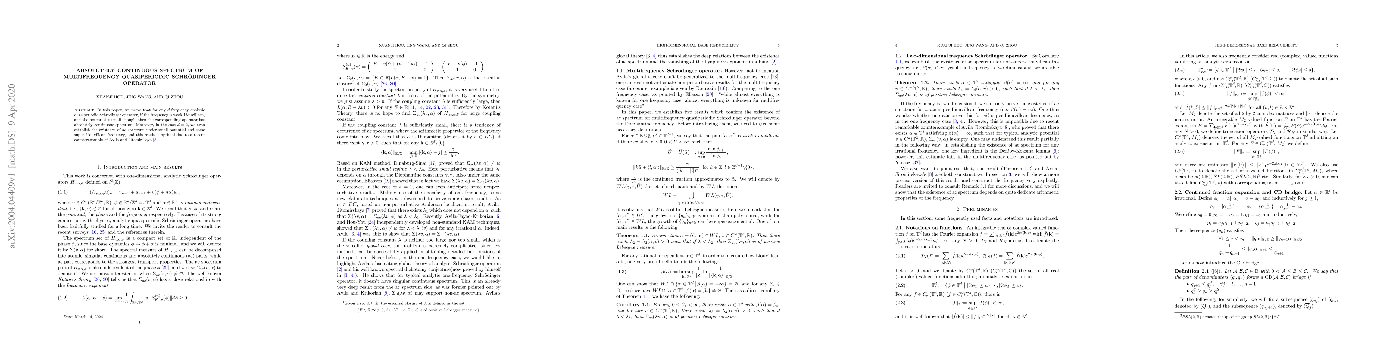 In this paper, we prove that for any $d$-frequency analytic quasiperiodic Schr\"odinger operator, if the frequency is weak Liouvillean, and the potential is small enough, then the corresponding operator has absolutely continuous spectrum. Moreover, in the case $d=2$, we even establish the existence of ac spectrum under small potential and some super-Liouvillean frequency, and this result is optimal due to a recent counterexample of Avila and Jitomirskaya.