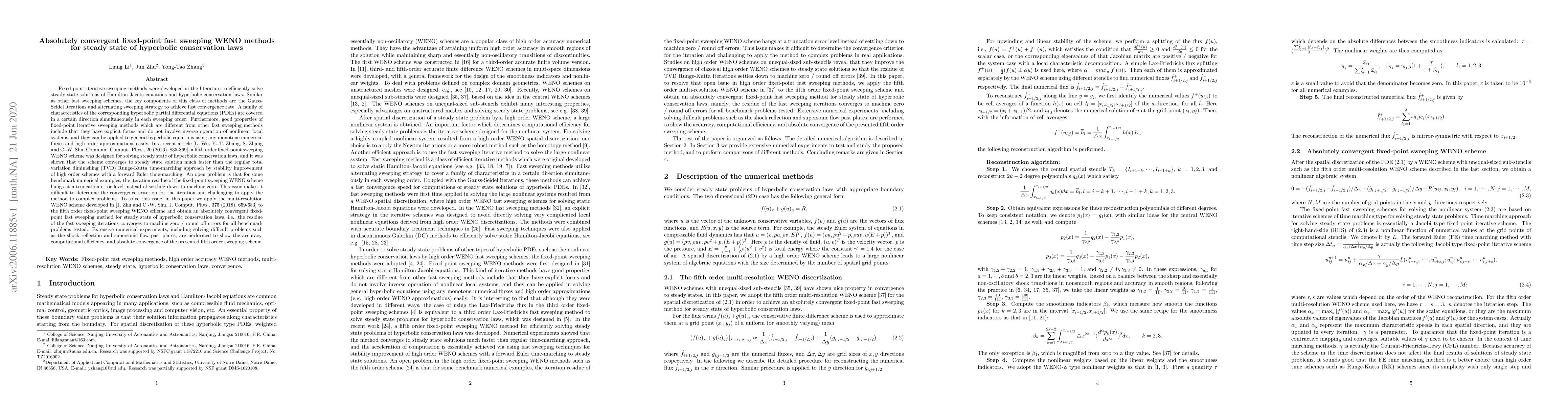 This paper develops an absolutely convergent fixed-point fast sweeping WENO method for solving steady state solutions of hyperbolic conservation laws, improving upon previous schemes by ensuring the iteration residue converges to machine zero, thus facilitating accurate convergence criteria and broader applicability.