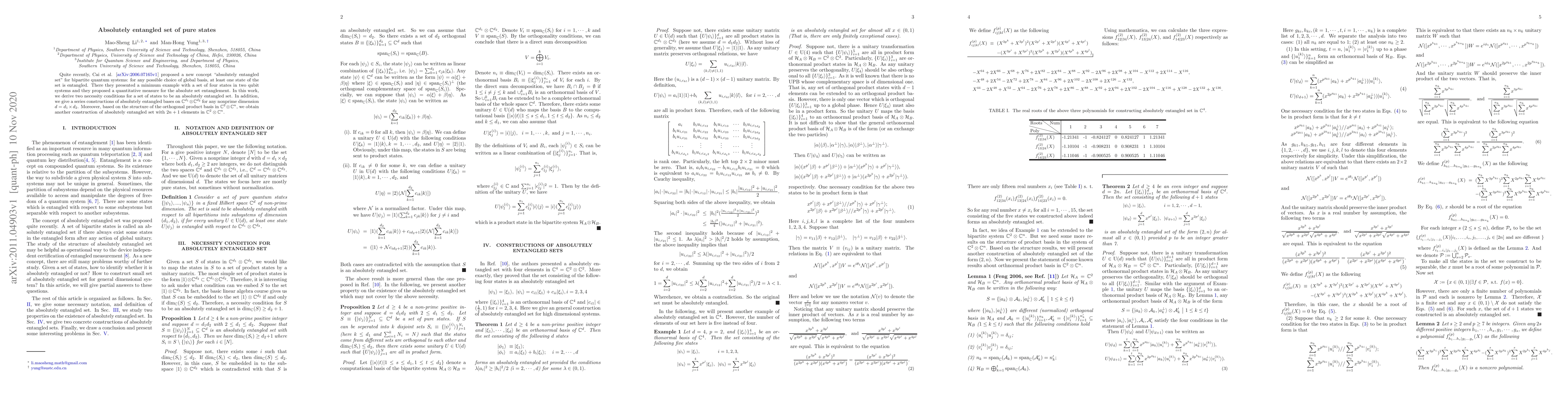 Researchers derive necessity conditions for a set of states to be an absolutely entangled set in bipartite quantum systems, providing constructions for any nonprime dimension and obtaining another construction for 2n+1 elements in C^2 ⊗ C^n.