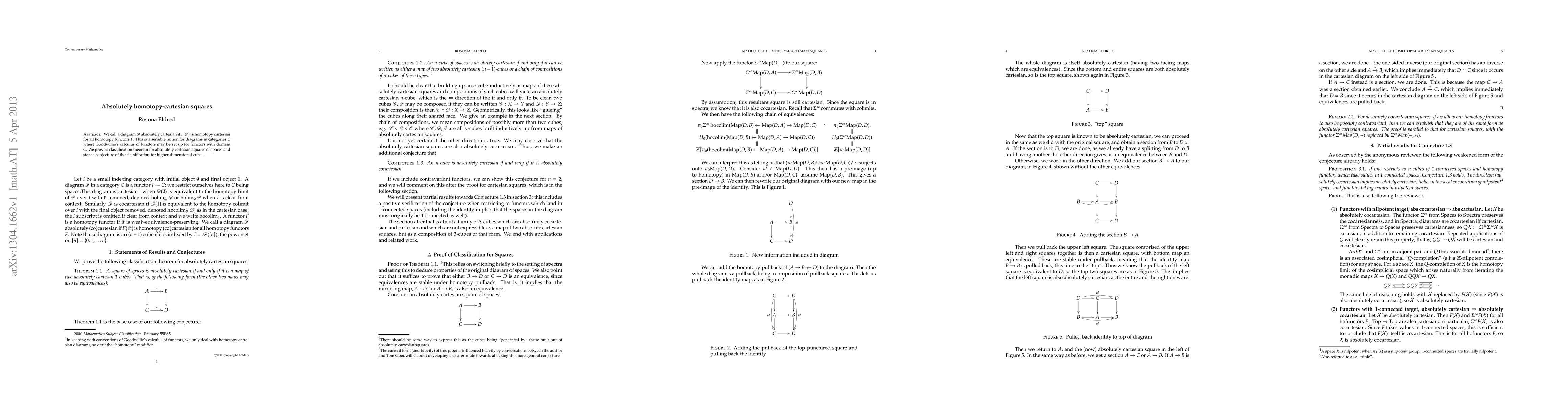 This paper introduces the concept of absolutely cartesian diagrams, which remain homotopy cartesian under all homotopy functors, and proves a classification theorem for absolutely cartesian squares of spaces. The authors also propose a conjecture for the classification of higher dimensional cubes.