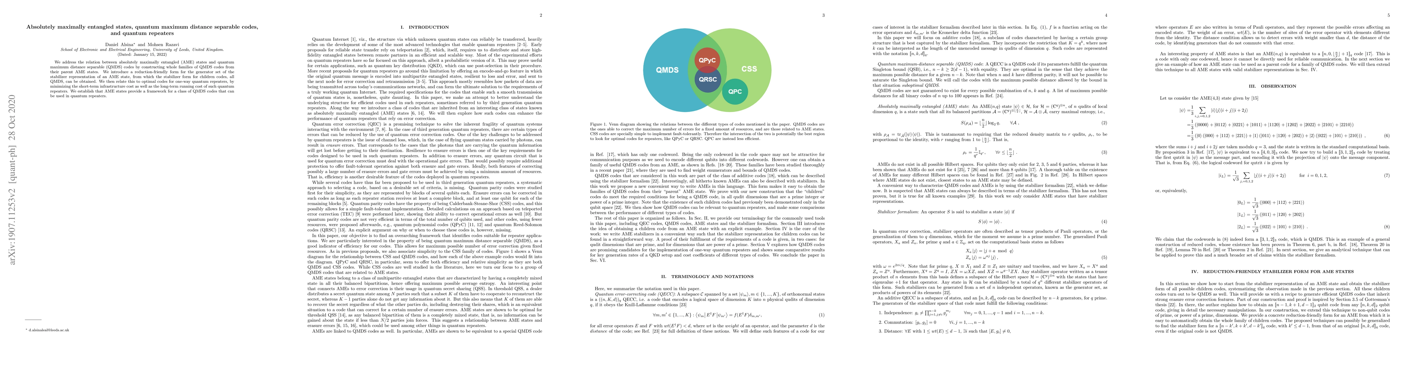 This paper constructs families of quantum maximum distance separable (QMDS) codes from absolutely maximally entangled (AME) states and introduces a reduction-friendly form for their generator sets. The study also links these codes to optimal quantum repeaters, minimizing both short-term infrastructure and long-term operational costs.