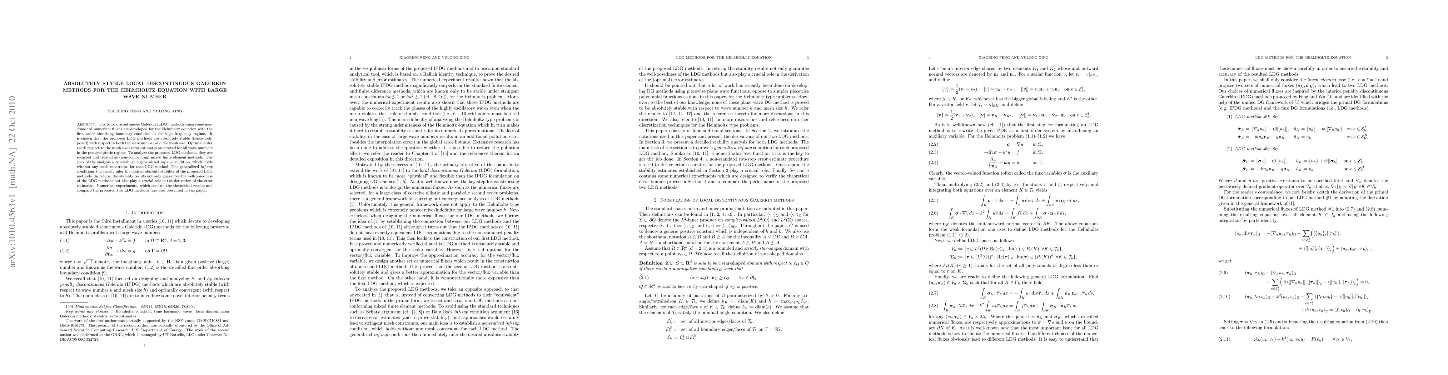 This paper presents two local discontinuous Galerkin (LDG) methods for solving the Helmholtz equation in high frequency regimes, demonstrating absolute stability and optimal error estimates. The methods are recast as mixed finite element methods, with a generalized inf-sup condition ensuring stability without mesh constraints.