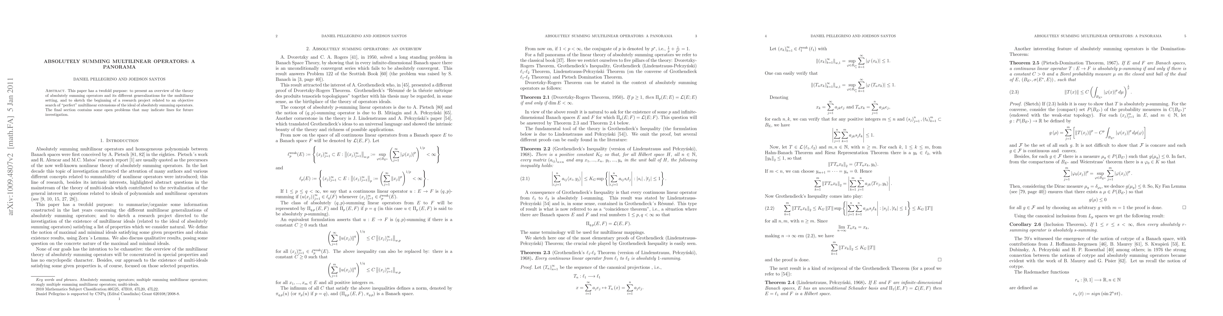 This paper provides an overview of absolutely summing operators and their multilinear generalizations, while initiating a research project aimed at finding optimal multilinear extensions of the ideal of absolutely summing operators. It concludes with open problems suggesting potential future research directions.
