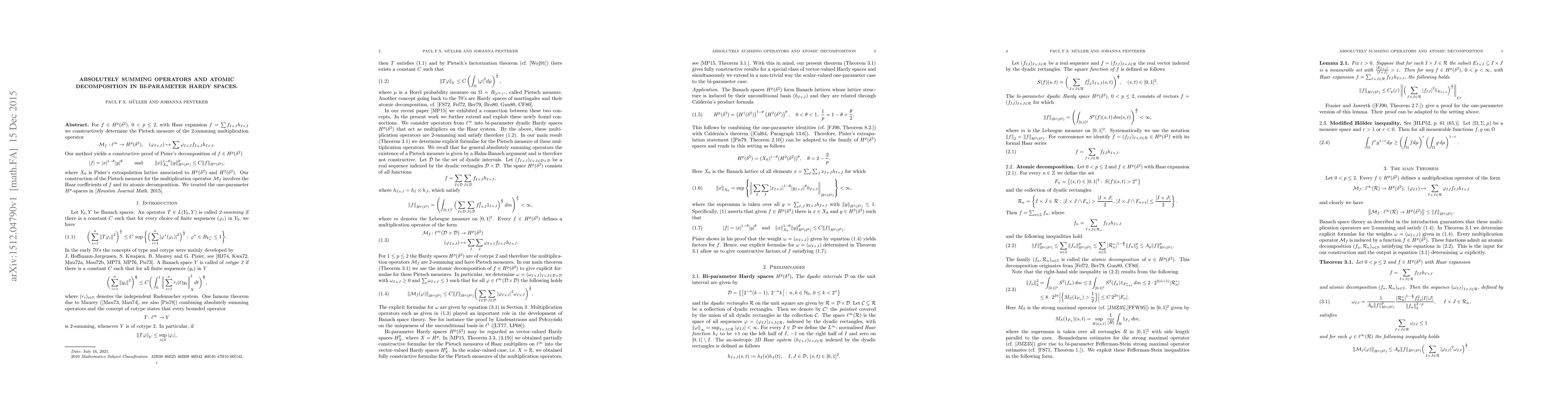 For $f \in H^p(\delta^2)$, $0