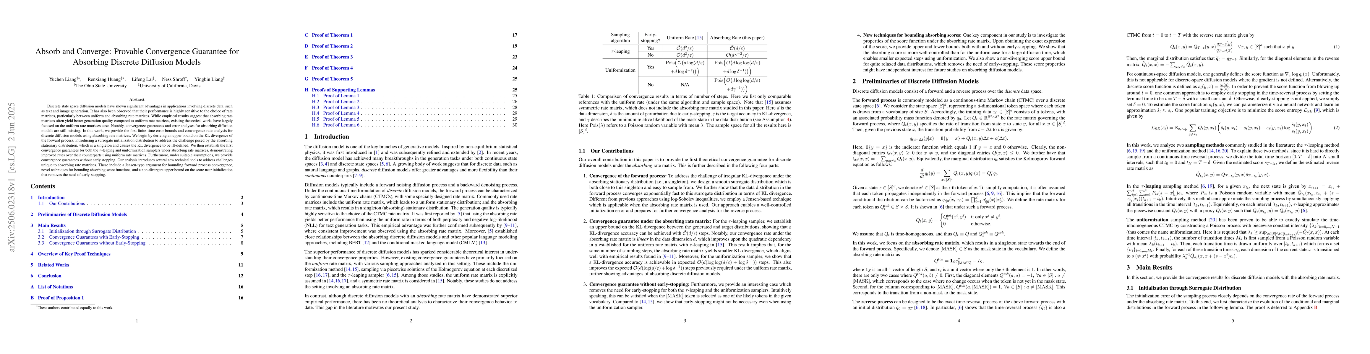 This paper provides the first finite-time error bounds and convergence rate analysis for discrete diffusion models using absorbing rate matrices, improving generation quality over uniform rate matrices.