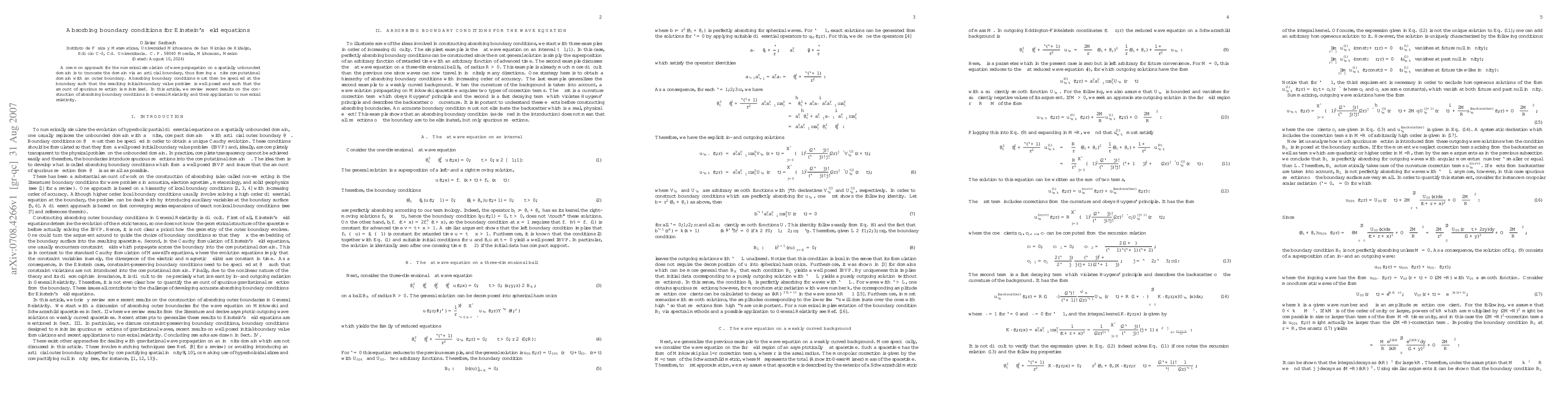This paper reviews recent advancements in constructing absorbing boundary conditions for simulating wave propagation in General Relativity, focusing on minimizing spurious reflections in numerical relativity simulations.