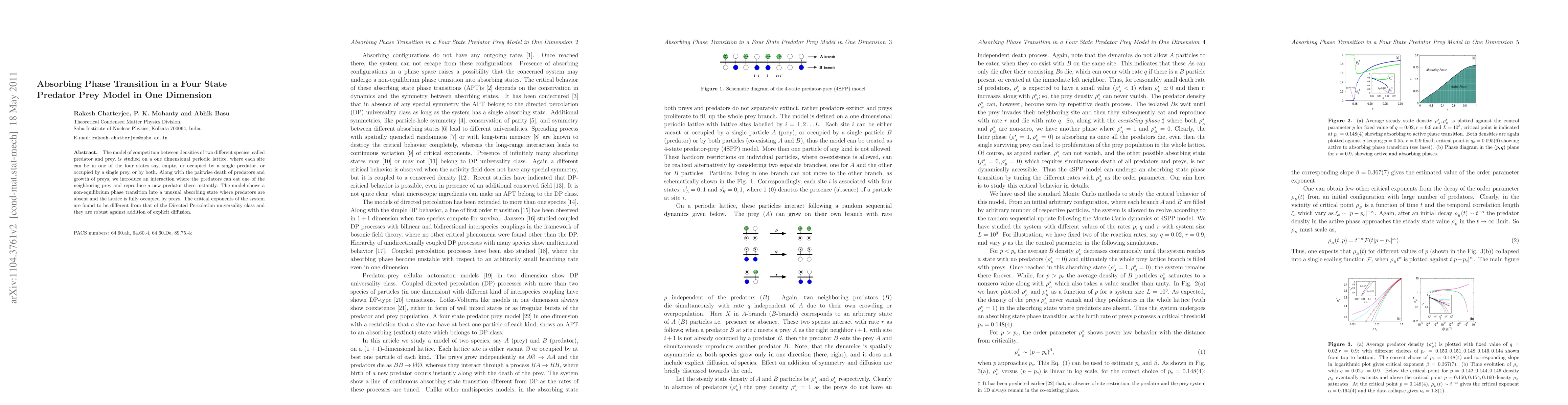 This paper studies a one-dimensional predator-prey model on a four-state lattice, revealing a non-equilibrium phase transition into an absorbing state where predators vanish and the lattice is fully occupied by prey. The critical exponents differ from those of the Directed Percolation universality class, remaining stable even with added diffusion.