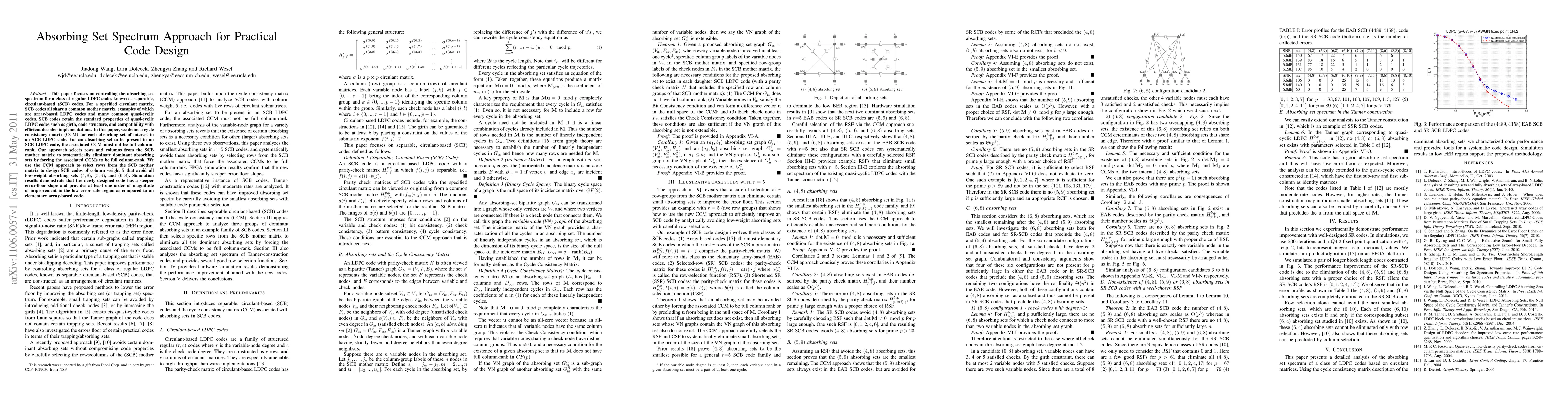 This paper introduces a method to control absorbing set spectrum in separable circulant-based (SCB) codes, resulting in improved error-floor slopes and low error rate regions.