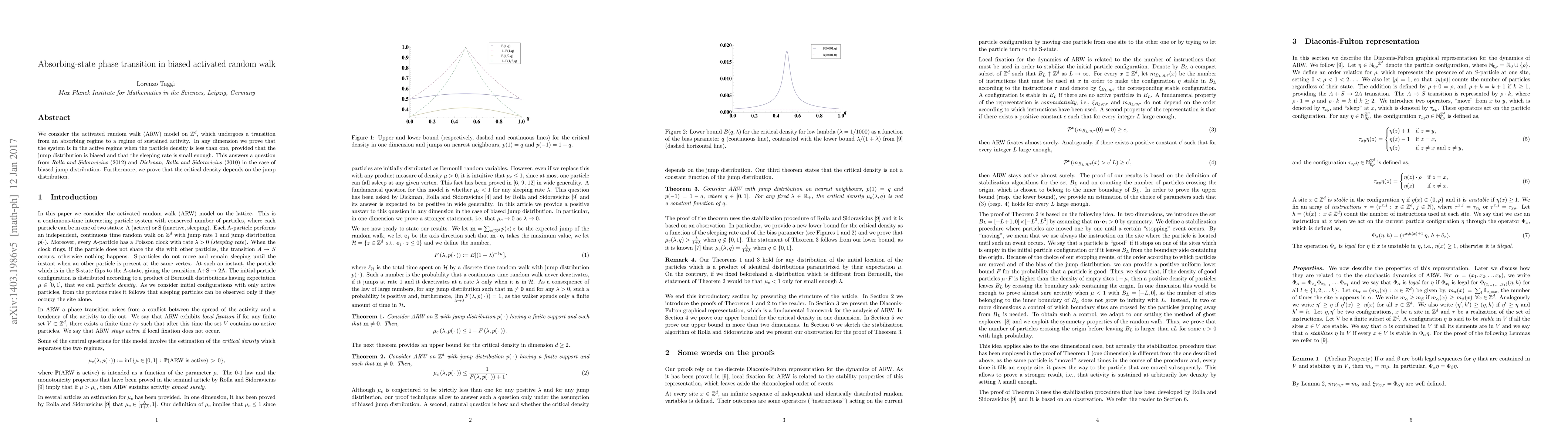 This paper investigates the absorbing-state phase transition in biased activated random walk on $\mathbb{Z}^d$, showing that the system remains active when particle density is below one under a biased jump distribution and a sufficiently low sleeping rate. The critical density for activity is found to depend on the specific jump distribution.