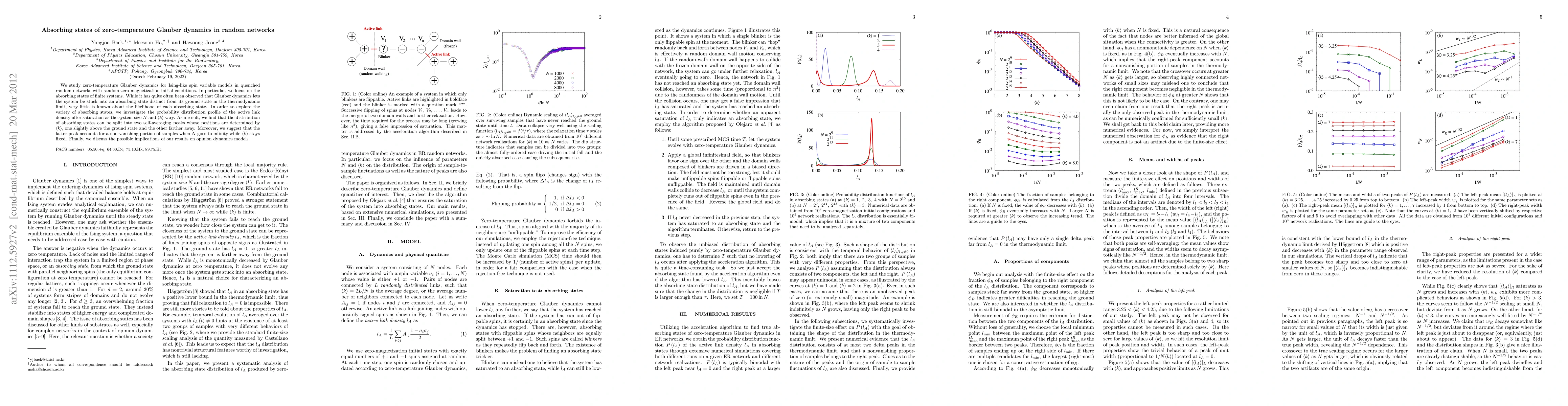 This paper investigates the absorbing states of zero-temperature Glauber dynamics in random networks, revealing two self-averaging peaks in the probability distribution of active link density. The study suggests that one peak, distinct from the ground state, becomes significant in the thermodynamic limit.