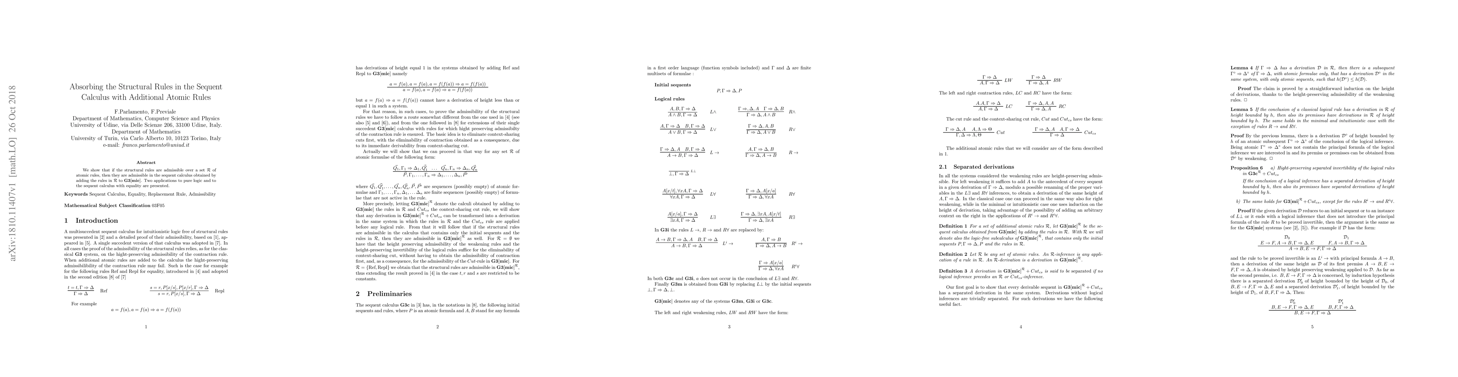 This paper demonstrates that structural rules remain admissible when added to the sequent calculus G3[mic] with a set R of atomic rules, provided they are admissible over R. The findings are applied to pure logic and the sequent calculus with equality.