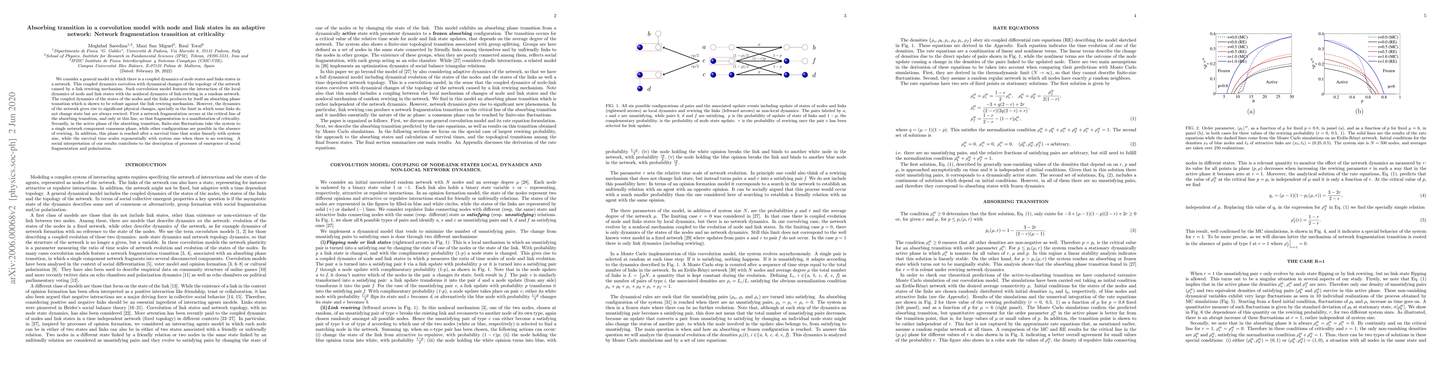 This paper investigates a coevolution model where node and link states in a network dynamically interact with a link rewiring mechanism, leading to an absorbing transition. The study reveals that network fragmentation occurs at the criticality of the absorbing transition, indicating a manifestation of criticality, and highlights differences in the system's behavior with and without rewiring, contributing to understanding social fragmentation and polarization.