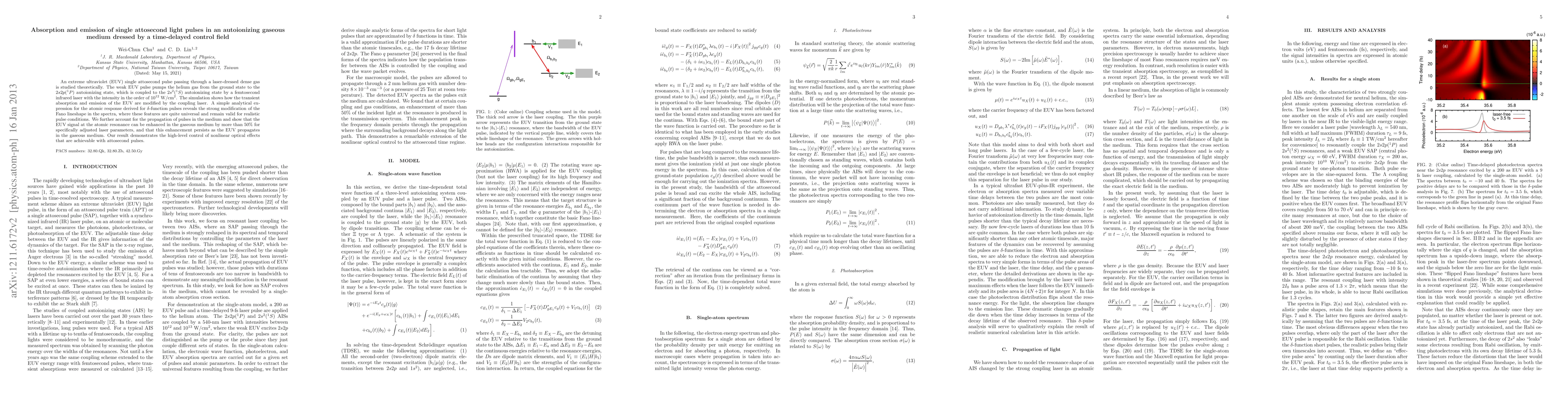 An extreme ultraviolet (EUV) single attosecond pulse passing through a laser-dressed dense gas is studied theoretically. The weak EUV pulse pumps the helium gas from the ground state to the 2s2p(1P) autoionizing state, which is coupled to the 2s2(1S) autoionizing state by a femtosecond infrared laser with the intensity in the order of 10^{12} W/cm2. The simulation shows how the transient absorption and emission of the EUV are modified by the coupling laser. A simple analytical expression for the atomic response derived for delta-function pulses reveals the strong modification of the Fano lineshape in the spectra, where these features are quite universal and remain valid for realistic pulse conditions. We further account for the propagation of pulses in the medium and show that the EUV signal at the atomic resonance can be enhanced in the gaseous medium by more than 50% for specifically adjusted laser parameters, and that this enhancement persists as the EUV propagates in the gaseous medium. Our result demonstrates the high-level control of nonlinear optical effects that are achievable with attosecond pulses.
