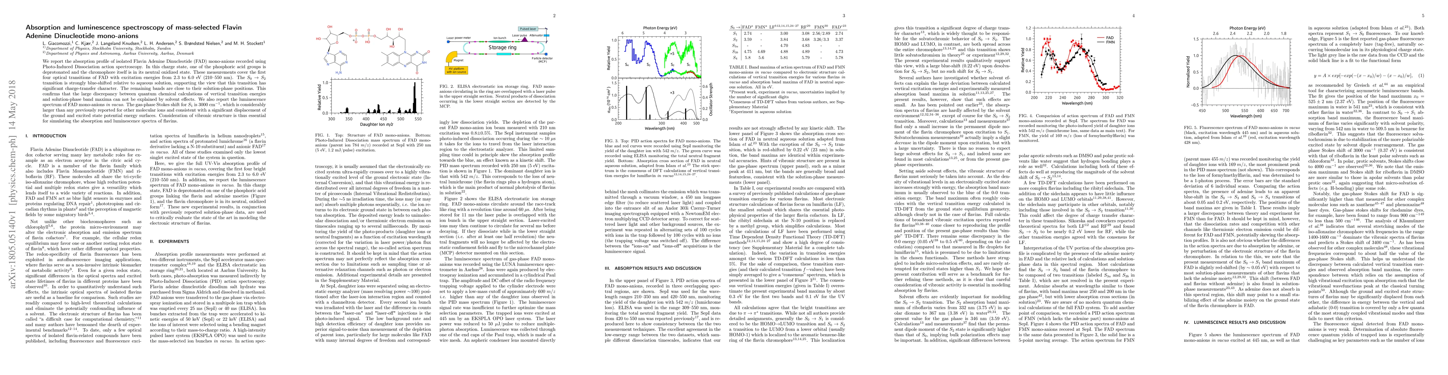 This study investigates the absorption and luminescence spectra of isolated Flavin Adenine Dinucleotide (FAD) mono-anions using Photo-Induced Dissociation action spectroscopy, revealing significant blue-shifting of the $S_0\rightarrow S_2$ transition and a large gas-phase Stokes shift for $S_1$, highlighting the importance of solvent-free conditions and vibronic structure in spectral simulations.