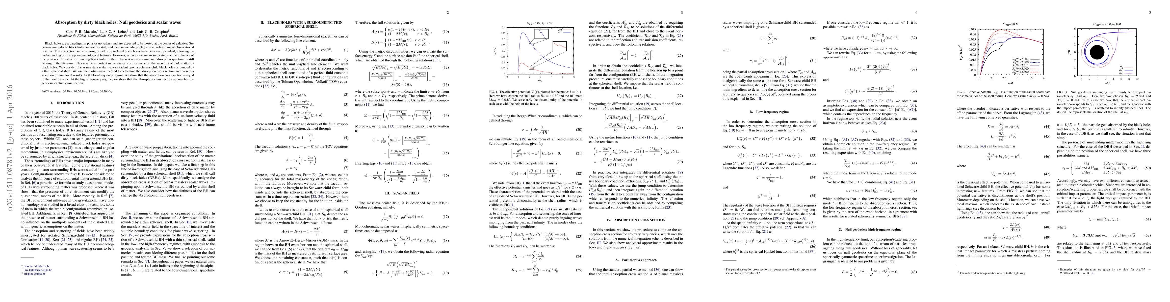 This paper investigates the absorption of massless scalar waves by a Schwarzschild black hole surrounded by a thin spherical shell, employing the partial wave method to determine the absorption cross section. It finds that in the low-frequency regime, the absorption cross section equals the horizon area, while in the high-frequency regime, it approaches the geodesic capture cross section.