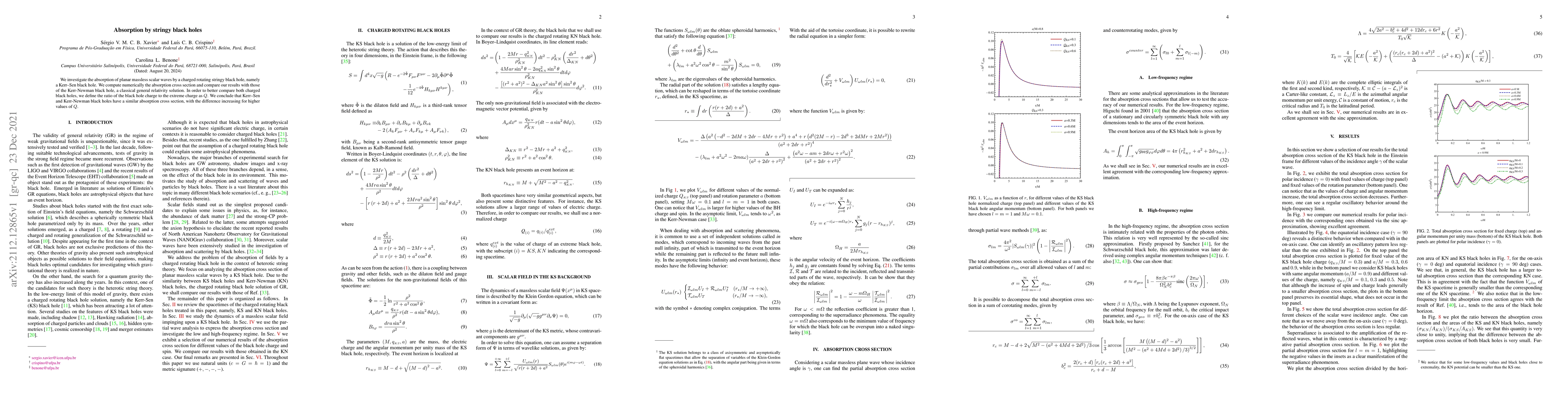 We investigate the absorption of planar massless scalar waves by a charged rotating stringy black hole, namely a Kerr--Sen black hole. We compute numerically the absorption cross section and compare our results with those of the Kerr-Newman black hole, a classical general relativity solution. In order to better compare both charged black holes, we define the ratio of the black hole charge to the extreme charge as $Q$. We conclude that Kerr--Sen and Kerr-Newman black holes have a similar absorption cross section, with the difference increasing for higher values of $Q$.