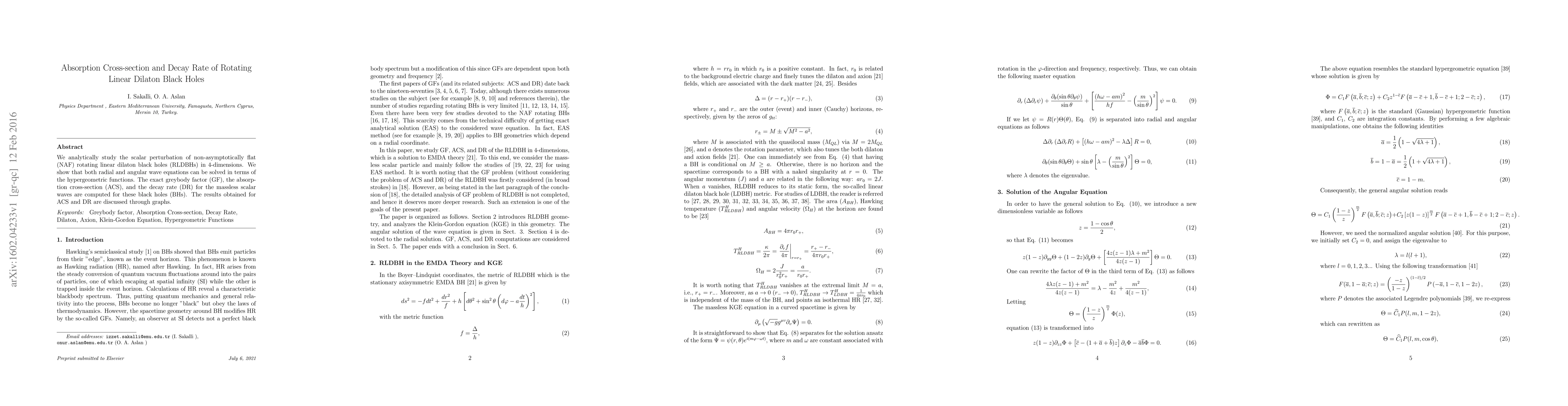 This paper analytically investigates scalar perturbations of 4-dimensional rotating linear dilaton black holes, solving radial and angular wave equations using hypergeometric functions. It computes the exact greybody factor, absorption cross-section, and decay rate for massless scalar waves, presenting results graphically.