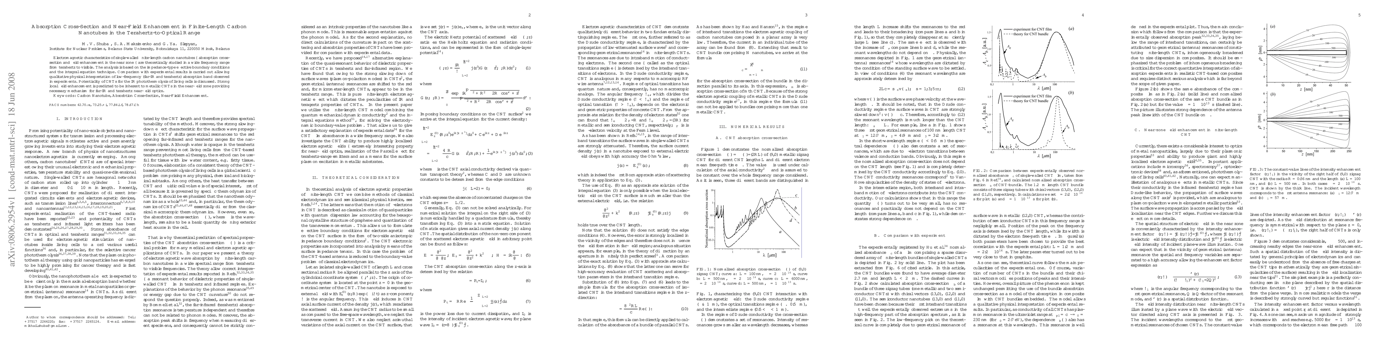 This paper theoretically investigates the electromagnetic properties of finite-length carbon nanotubes, focusing on absorption cross-section and near-field enhancement from terahertz to visible frequencies. The study uses effective boundary conditions and integral equations, and it highlights the potential of metallic CNTs for IR photothermolysis and their role in near-field optics due to strong local field enhancement.