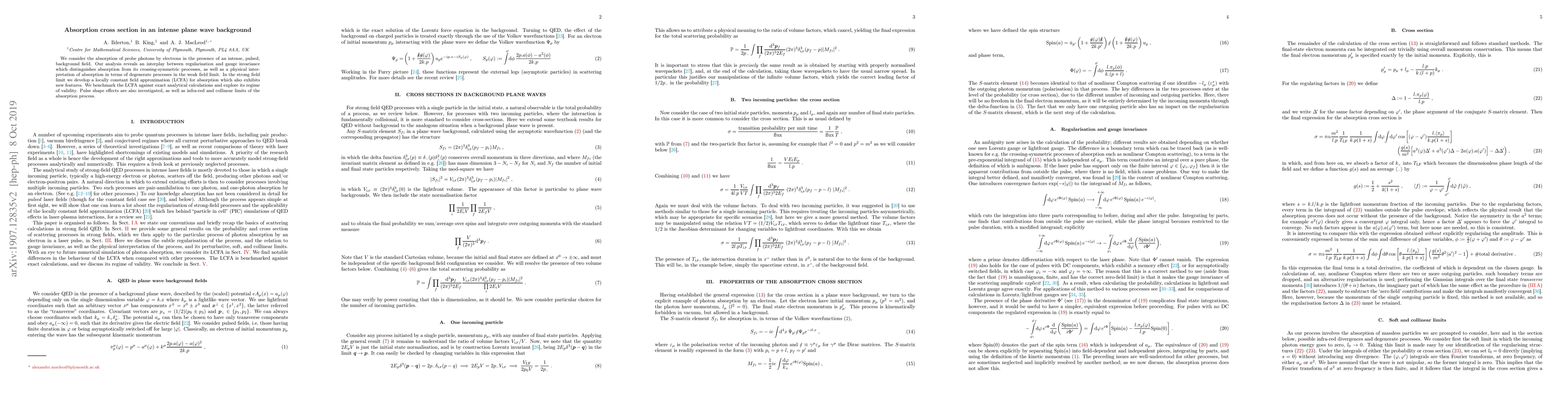 We consider the absorption of probe photons by electrons in the presence of an intense, pulsed, background field. Our analysis reveals an interplay between regularisation and gauge invariance which distinguishes absorption from its crossing-symmetric processes, as well as a physical interpretation of absorption in terms of degenerate processes in the weak field limit. In the strong field limit we develop a locally constant field approximation (LCFA) for absorption which also exhibits new features. We benchmark the LCFA against exact analytical calculations and explore its regime of validity. Pulse shape effects are also investigated, as well as infra-red and collinear limits of the absorption process.