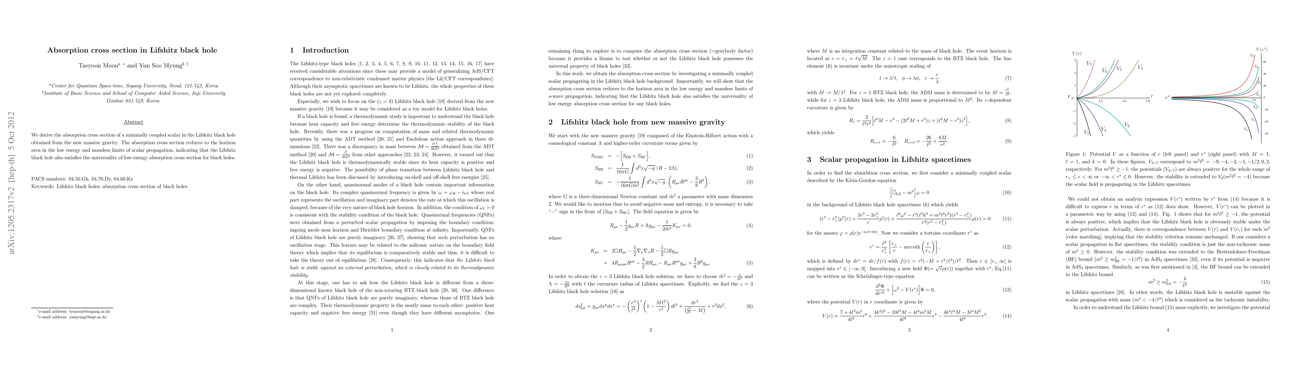 We derive the absorption cross section of a minimally coupled scalar in the Lifshitz black hole obtained from the new massive gravity. The absorption cross section reduces to the horizon area in the low energy and massless limit of s-wave mode propagation, indicating that the Lifshitz black hole also satisfies the universality of low energy absorption cross section for black holes.