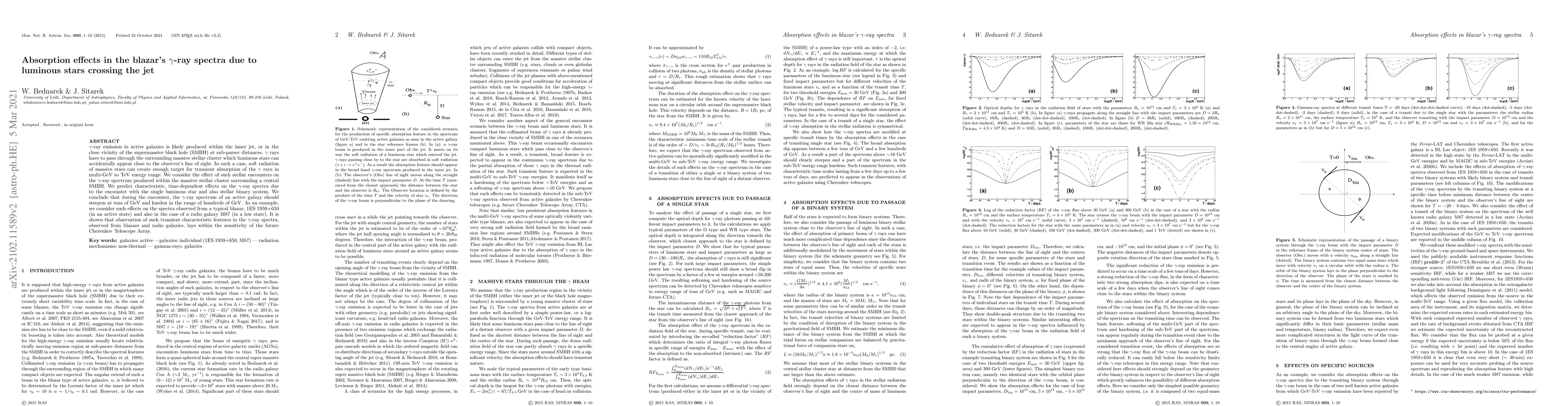 Gamma-ray emission in active galaxies is likely produced within the inner jet, or in the close vicinity of the supermassive black hole (SMBH) at sub-parsec distances. Gamma rays have to pass through the surrounding massive stellar cluster which luminous stars can accidentally appear close to the observer's line of sight. In such a case, soft radiation of massive stars can create enough target for transient absorption of the gamma rays in multi-GeV to TeV energy range. We consider the effect of such stellar encounters on the gamma-ray spectrum produced within the massive stellar cluster surrounding a central SMBH. We predict characteristic, time-dependent effects on the gamma-ray spectra due to the encounter with the single luminous star and also stellar binary system. We conclude that during the encounter, the gamma-ray spectrum of an active galaxy should steepen at tens of GeV and harden in the range of hundreds of GeV. As an example, we consider such effects on the spectra observed from a typical blazar, 1ES\ 1959+650 (in an active state) and also in the case of a radio galaxy M87 (in a low state). It is shown that observation of such transient characteristic features in the gamma-ray spectra, observed from blazars and radio galaxies, lays within the sensitivity of the future Cherenkov Telescope Array.