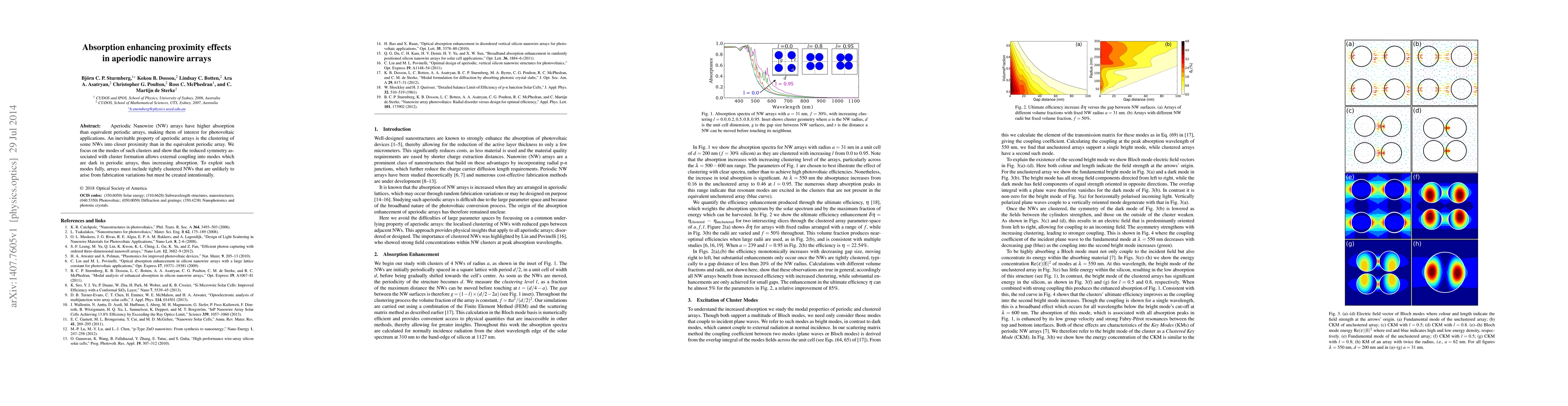 This paper investigates how aperiodic nanowire arrays enhance absorption through proximity effects, revealing that clustering of nanowires increases absorption by enabling coupling into dark modes that are inactive in periodic arrays. Intentionally creating tightly clustered nanowires is essential for fully exploiting these absorption-enhancing modes.