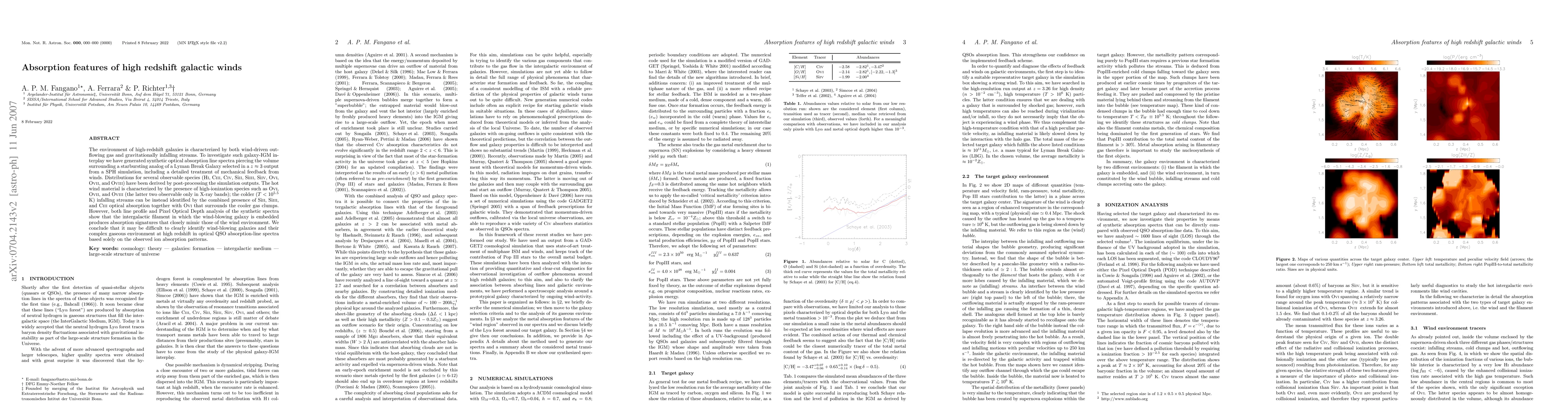 This paper investigates the absorption features of high-redshift galactic winds using synthetic optical spectra from a SPH simulation. It finds that distinguishing wind-driven outflows from infalling streams in optical QSO spectra is challenging due to similar absorption signatures from intergalactic filaments.
