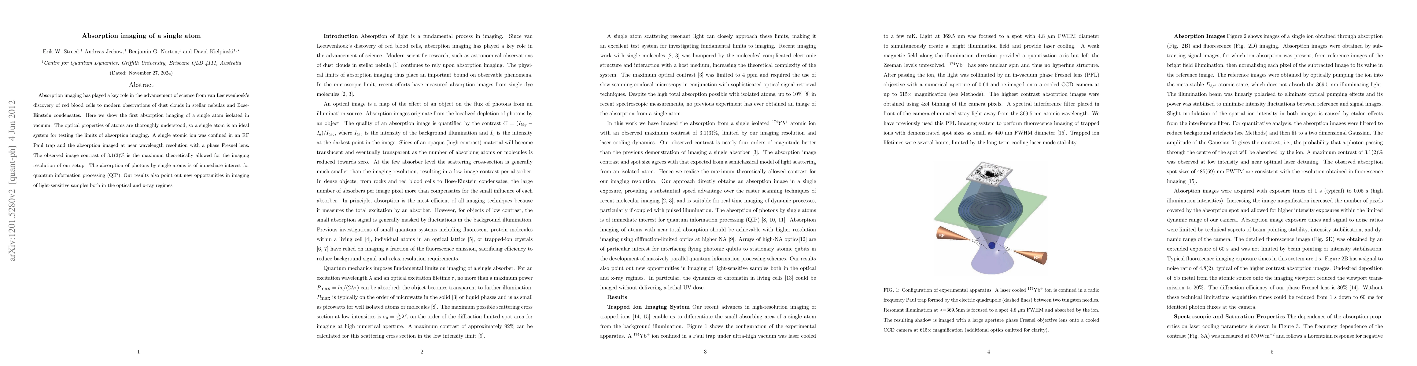 This paper demonstrates the first absorption imaging of a single atom isolated in vacuum, using a phase Fresnel lens to achieve near-wavelength resolution. The study highlights the potential of this technique for quantum information processing and imaging of light-sensitive samples across various regimes.