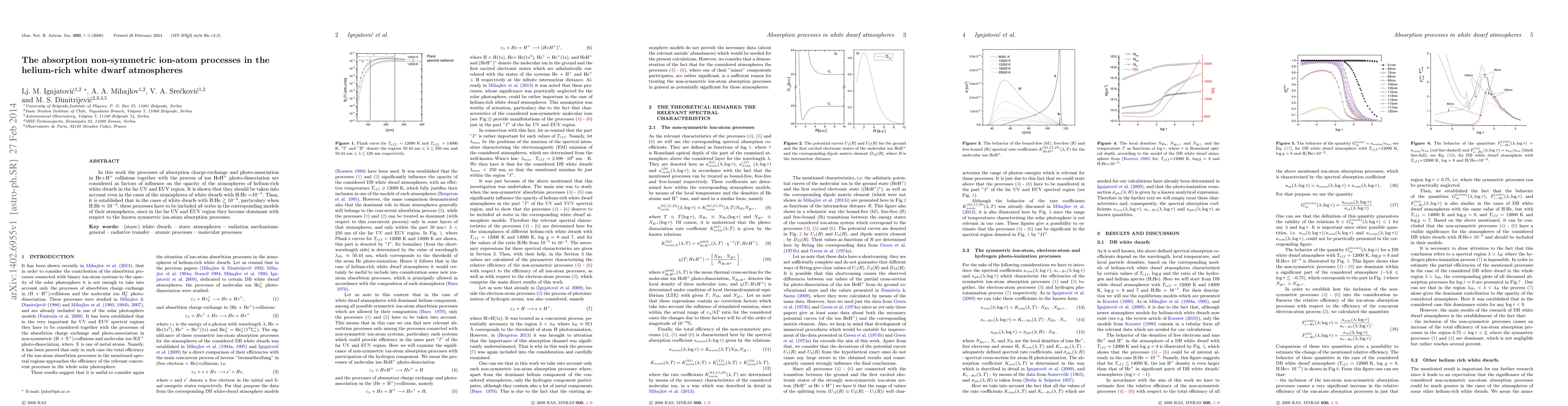 This paper investigates non-symmetric ion-atom processes like charge-exchange and photo-association in helium-hydrogen collisions and ion HeH+ photo-dissociation in helium-rich white dwarf atmospheres. It emphasizes the importance of these processes in determining the opacity, especially in the far UV and EUV regions, particularly for white dwarfs with hydrogen-to-helium ratios greater than 10^-4.