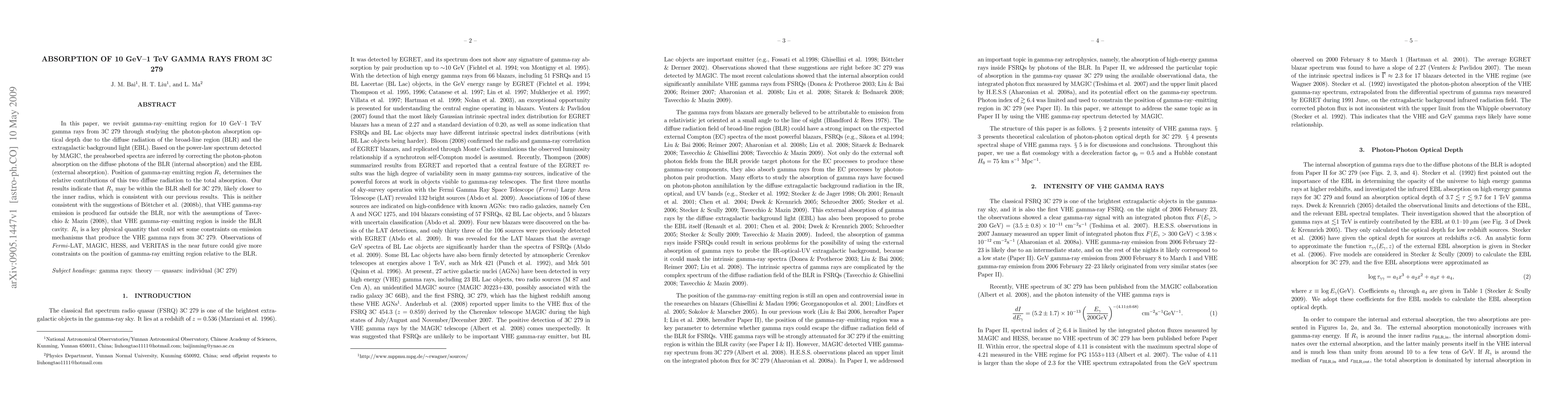 Researchers studied gamma-ray absorption from 3C 279, finding that the emitting region may be within the broad-line region's shell, closer to the inner radius, which challenges previous assumptions about VHE gamma-ray emission mechanisms.