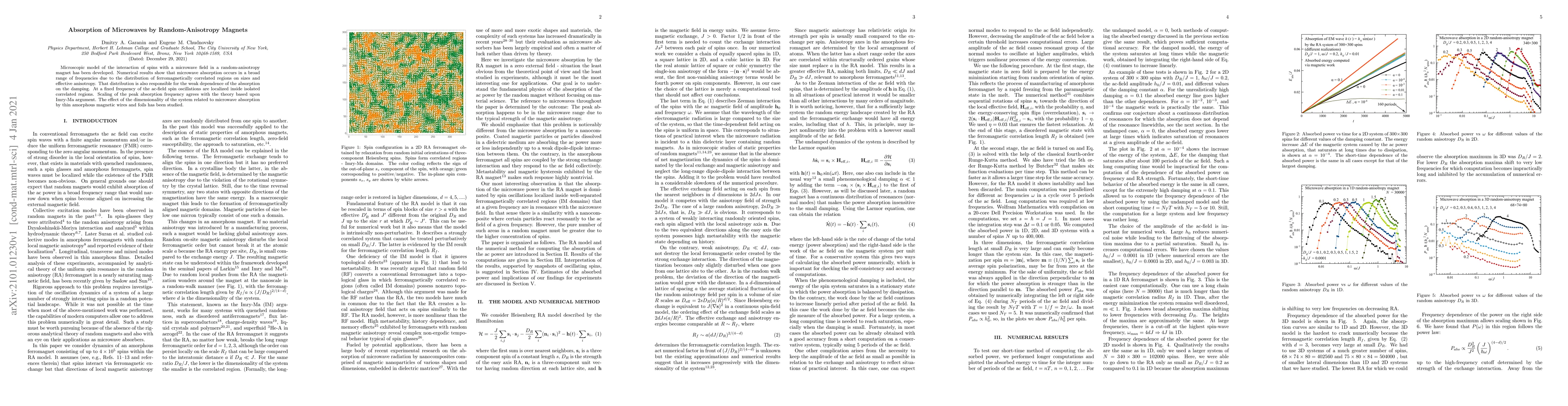 Researchers developed a model to understand how microwaves interact with random-anisotropy magnets, finding that microwave absorption occurs over a broad frequency range due to the distribution of magnetic domains. The effect is particularly strong in low-dimensional systems, making these materials promising candidates for enhanced microwave absorption.