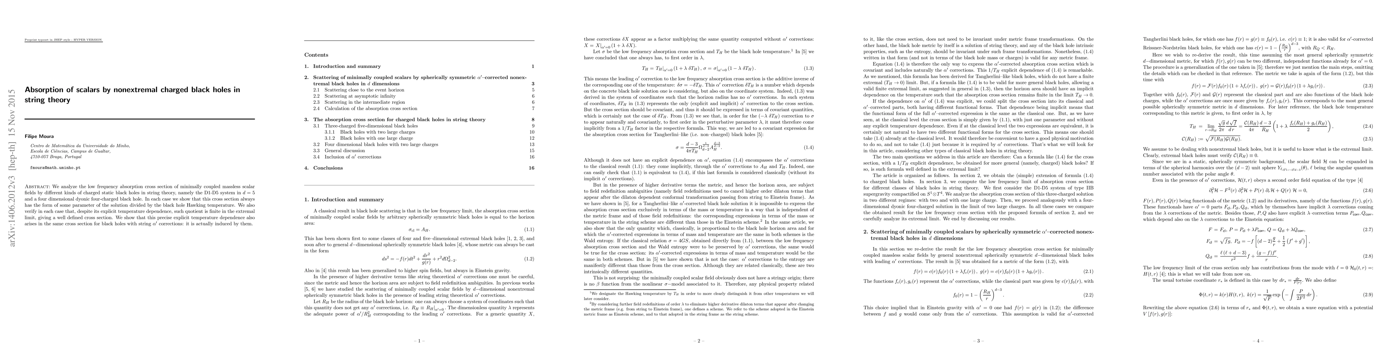 This paper investigates the absorption cross section of massless scalar fields by charged black holes in string theory, showing that it is proportional to a parameter of the solution divided by the black hole's Hawking temperature. It confirms the finiteness of this quotient in the extremal limit and attributes the explicit temperature dependence to string alpha' corrections.