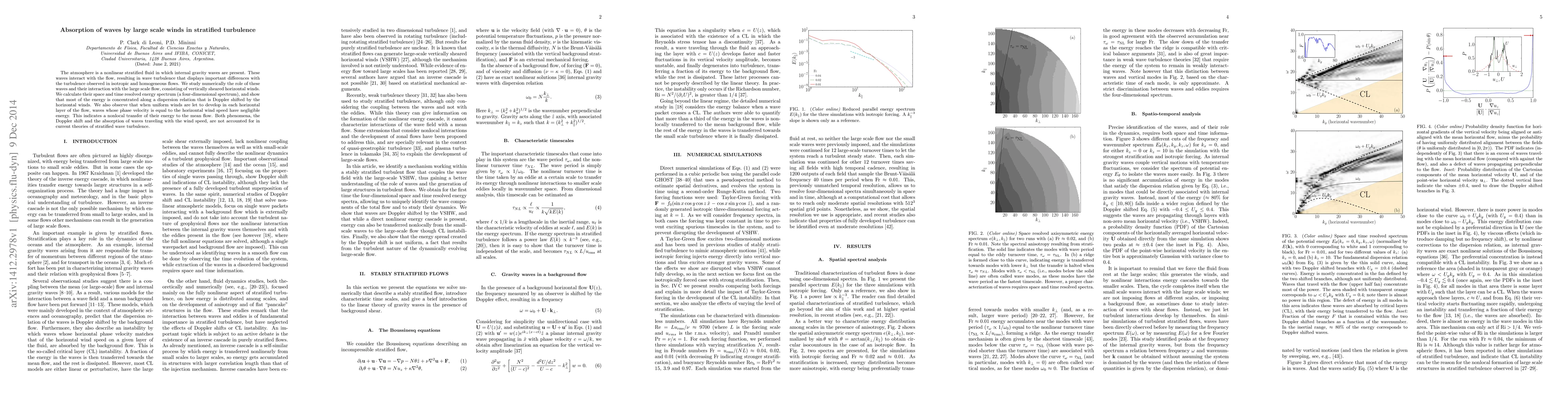 Numerical study reveals that large-scale winds in stratified turbulence interact with internal gravity waves, concentrating energy along a Doppler-shifted dispersion relation and leading to wave absorption when traveling with wind speed.