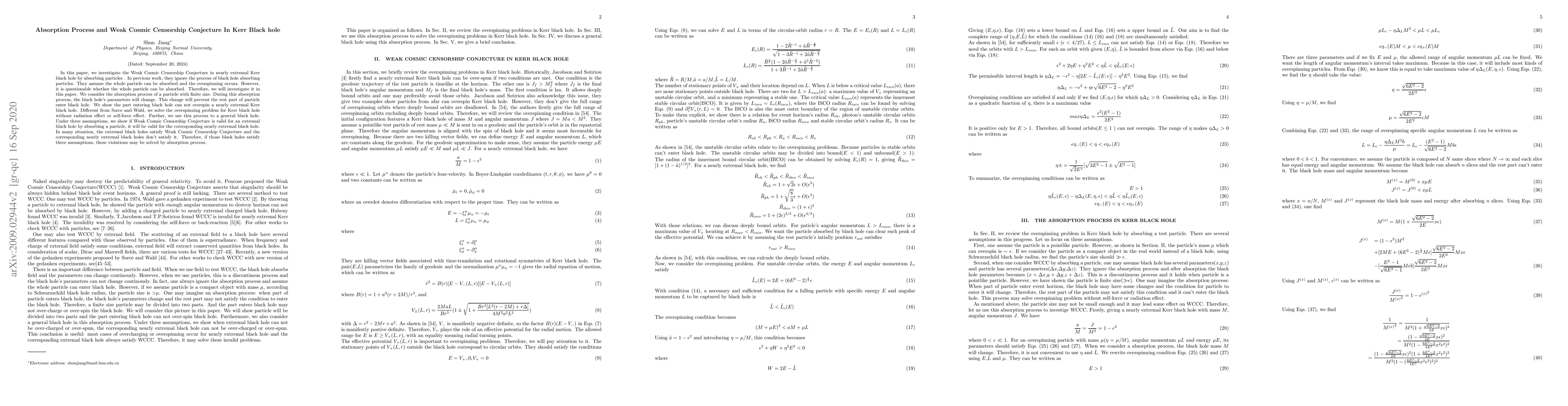 In this paper, we investigate the Weak Cosmic Censorship Conjecture in nearly extremal Kerr black hole by absorbing particles . In previous work, they ignore the process of black hole absorbing particles. They assume the whole particle can be absorbed and the overspinning occurs. However, it is questionable whether the whole particle can be absorbed. Therefore, we will investigate it in this paper. We consider the absorption process of a particle with finite size. During this absorption process, the black hole's parameters will change. This change will prevent the rest part of particle enter black hole. We show the part entering black hole can not overspin a nearly extremal Kerr black hole. Different from Sorce and Wald, we solve the overspinning problem for Kerr black hole without radiation effect or self-force effect. Further, we use this process to a general black hole. Under three assumptions, we show if Weak Cosmic Censorship Conjecture is valid for an extremal black hole by absorbing a particle, it will be valid for the corresponding nearly extremal black hole. In many situation, the extremal black holes satisfy Weak Cosmic Censorship Conjecture and the corresponding nearly extremal black holes don't satisfy it. Therefore, if those black holes satisfy three assumptions, these violations may be solved by absorption process.