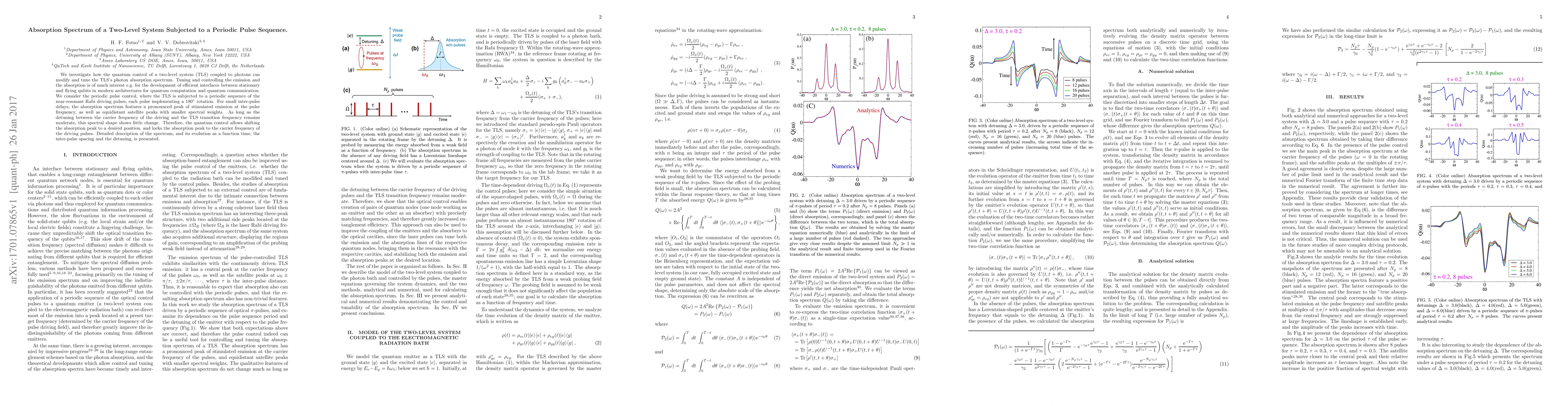 This paper explores how periodic pulse control of a two-level system (TLS) alters its photon absorption spectrum, allowing tuning of emission and absorption, which is vital for quantum interfaces. The study reveals that periodic near-resonant pulses generate a peak at the pulse frequency and satellite peaks, enabling precise control of the absorption spectrum.