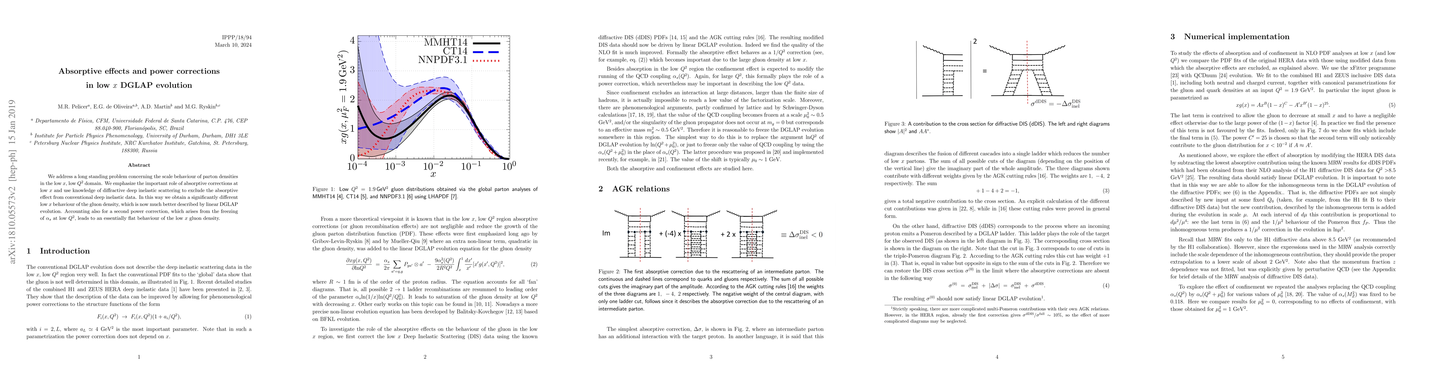 We address a long standing problem concerning the scale behaviour of parton densities in the low $x$, low $Q^2$ domain. We emphasize the important role of absorptive corrections at low $x$ and use knowledge of diffractive deep inelastic scattering to exclude the absorptive effect from conventional deep inelastic data. In this way we obtain a significantly different low $x$ behaviour of the gluon density, which is now much better described by linear DGLAP evolution. Accounting also for a second power correction, which arises from the freezing of $\alpha_s$ at low $Q^2$, leads to an essentially flat behaviour of the low $x$ gluon density.