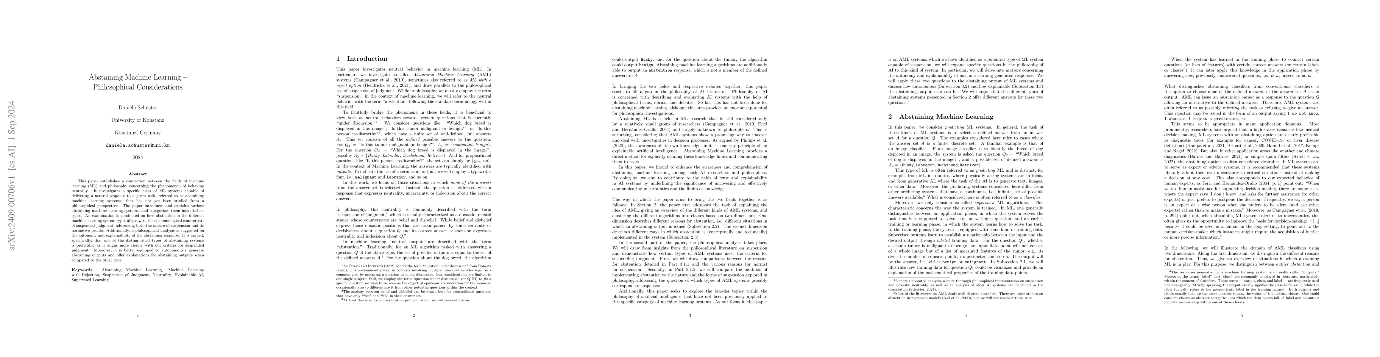 This paper explores the philosophical implications of abstaining machine learning systems, categorizing them and examining their alignment with epistemological suspended judgment. It argues that one type of abstaining system better embodies the criteria for suspended judgment, autonomy, and explainability.