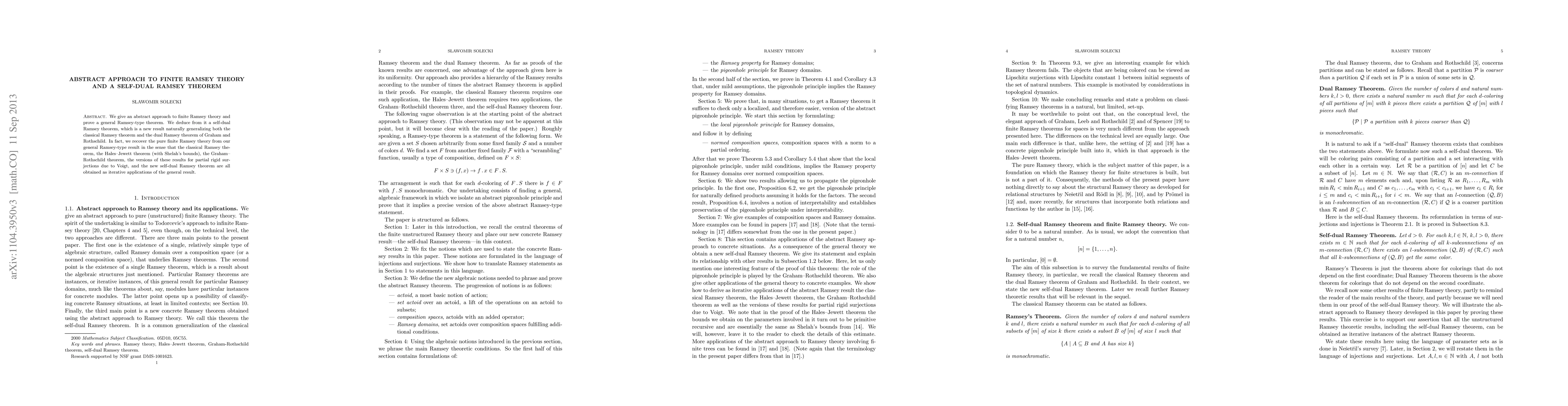 This paper introduces an abstract framework for finite Ramsey theory and proves a general Ramsey-type theorem, from which a new self-dual Ramsey theorem is derived, encompassing both classical and dual Ramsey theorems. The general result iteratively recovers various established finite Ramsey results.