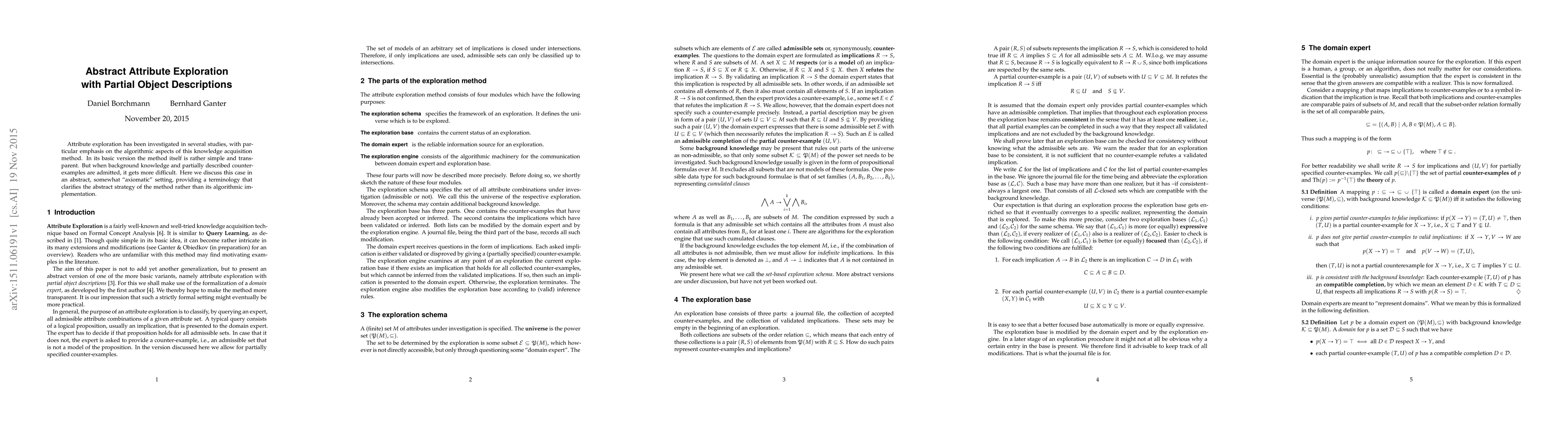 Attribute exploration has been investigated in several studies, with particular emphasis on the algorithmic aspects of this knowledge acquisition method. In its basic version the method itself is rather simple and transparent. But when background knowledge and partially described counter-examples are admitted, it gets more difficult. Here we discuss this case in an abstract, somewhat "axiomatic" setting, providing a terminology that clarifies the abstract strategy of the method rather than its algorithmic implementation.