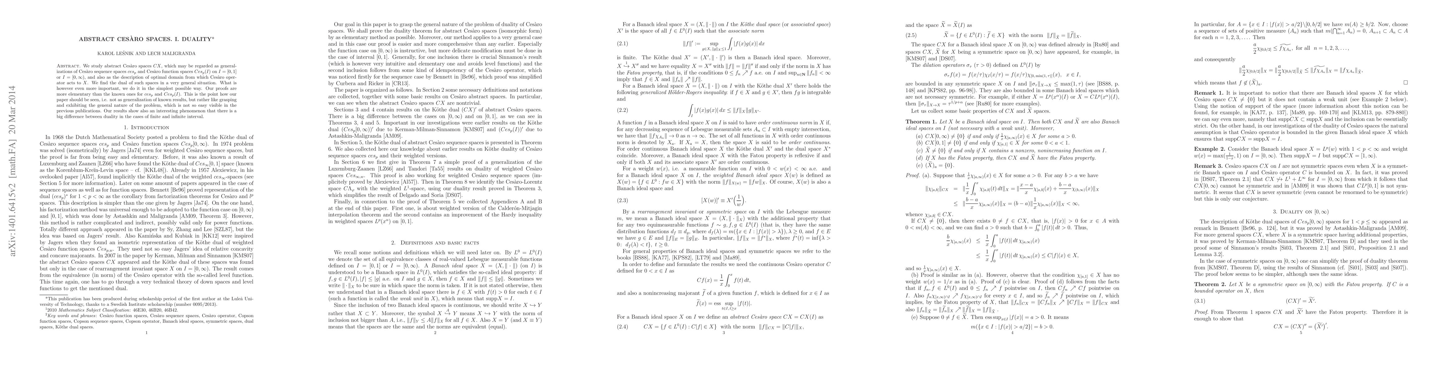 This paper explores abstract Cesàro spaces $CX$ as generalizations of Cesàro sequence and function spaces, and determines their duals in a straightforward manner. The findings highlight a significant distinction in duality between finite and infinite intervals.