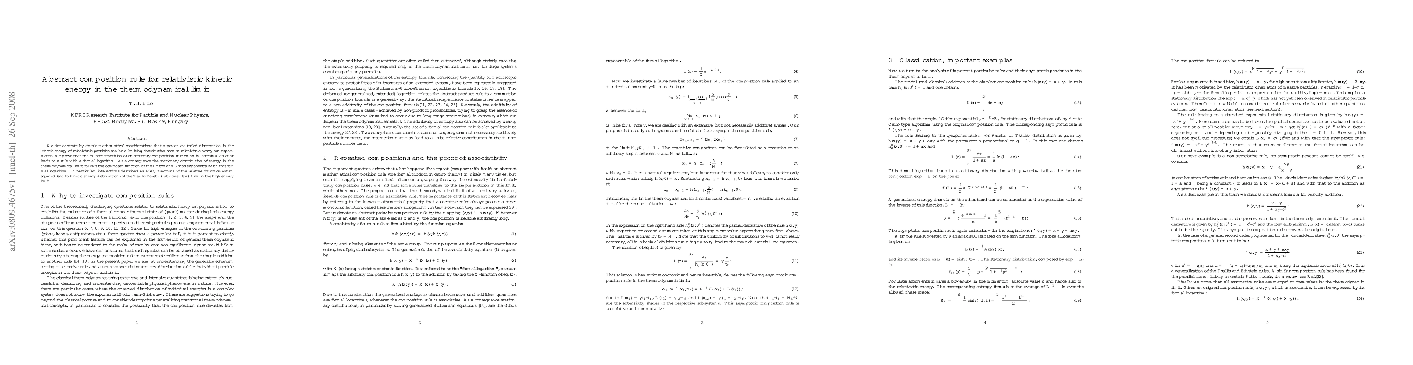 We demonstrate by simple mathematical considerations that a power-law tailed distribution in the kinetic energy of relativistic particles can be a limiting distribution seen in relativistic heavy ion experiments. We prove that the infinite repetition of an arbitrary composition rule on an infinitesimal amount leads to a rule with a formal logarithm. As a consequence the stationary distribution of energy in the thermodynamical limit follows the composed function of the Boltzmann-Gibbs exponential with this formal logarithm. In particular, interactions described as solely functions of the relative four-momentum squared lead to kinetic energy distributions of the Tsallis-Pareto (cut power-law) form in the high energy limit.