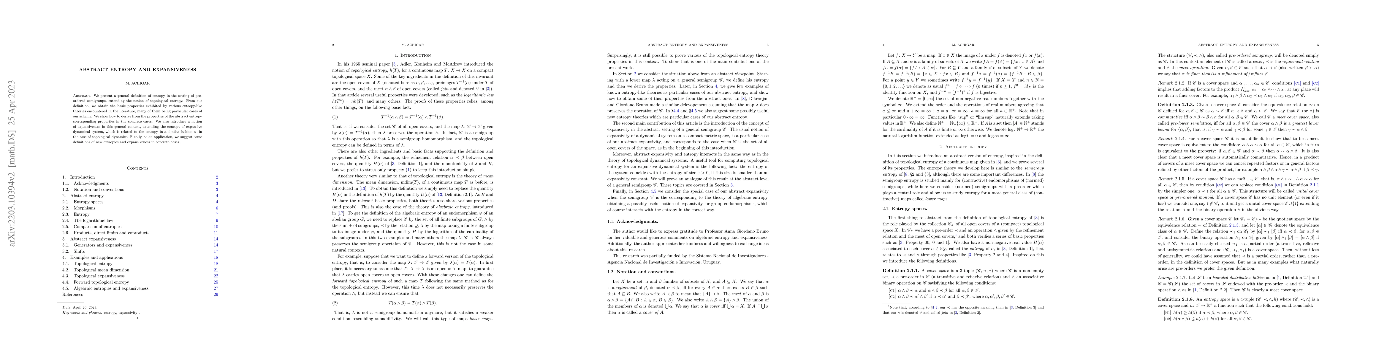 This paper defines abstract entropy for pre-ordered semigroups, extending topological entropy and encompassing various entropy theories. It also introduces a notion of expansiveness in this context, relating it to entropy, and proposes new definitions for specific cases.