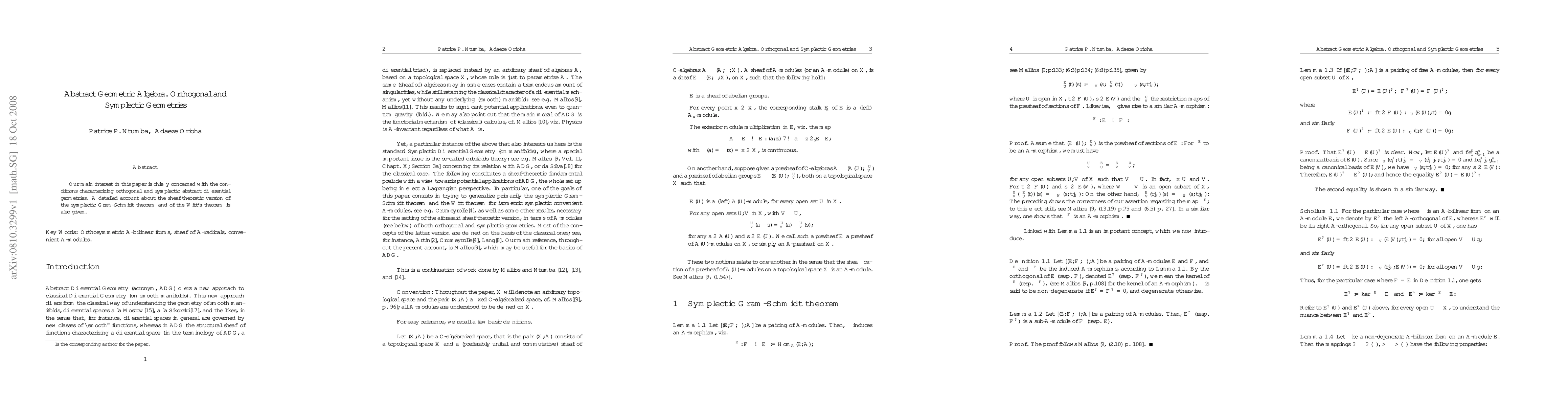 Our main interest in this paper is chiefly concerned with the conditions characterizing \textit{orthogonal and symplectic abstract differential geometries}. A detailed account about the sheaf-theoretic version of the \textit{symplectic Gram-Schmidt theorem} and of the \textit{Witt's theorem} is also given.