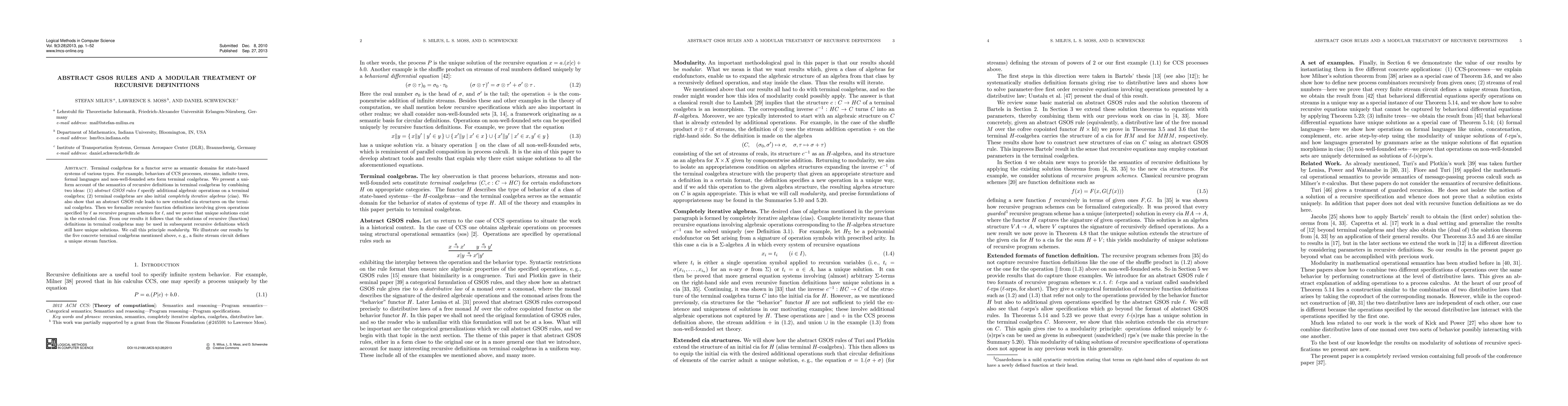 This paper introduces a uniform method for interpreting recursive definitions using terminal coalgebras and abstract GSOS rules, demonstrating that these rules lead to unique solutions in extended completely iterative algebras, thus establishing a principle of modularity for recursive function definitions. The approach is illustrated through examples like CCS processes and streams.