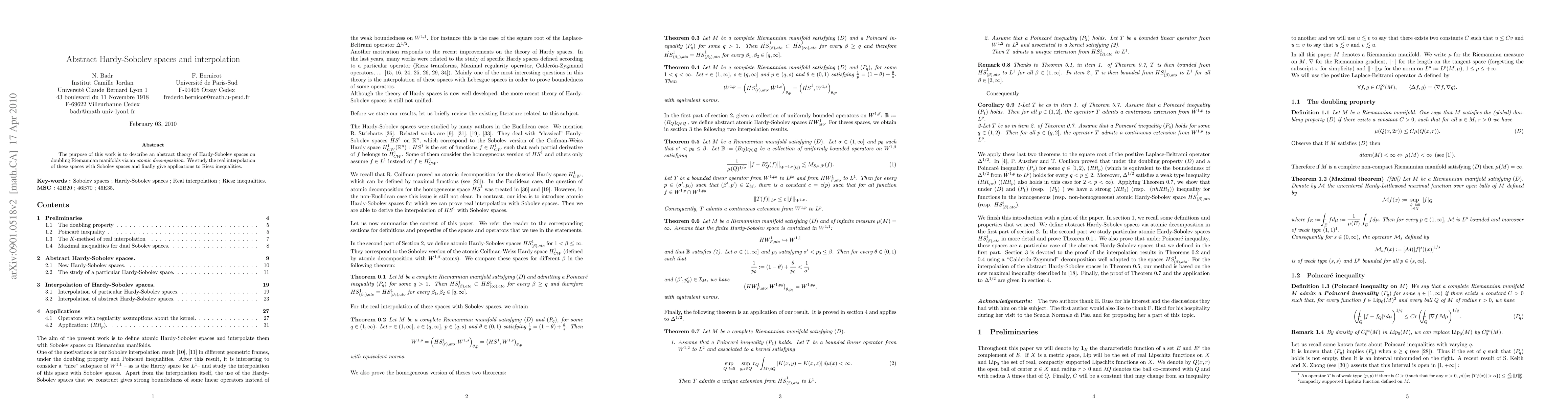 This paper develops an abstract framework for Hardy-Sobolev spaces on doubling Riemannian manifolds using atomic decompositions. It explores the real interpolation of these spaces with Sobolev spaces and applies the theory to derive Riesz inequalities.