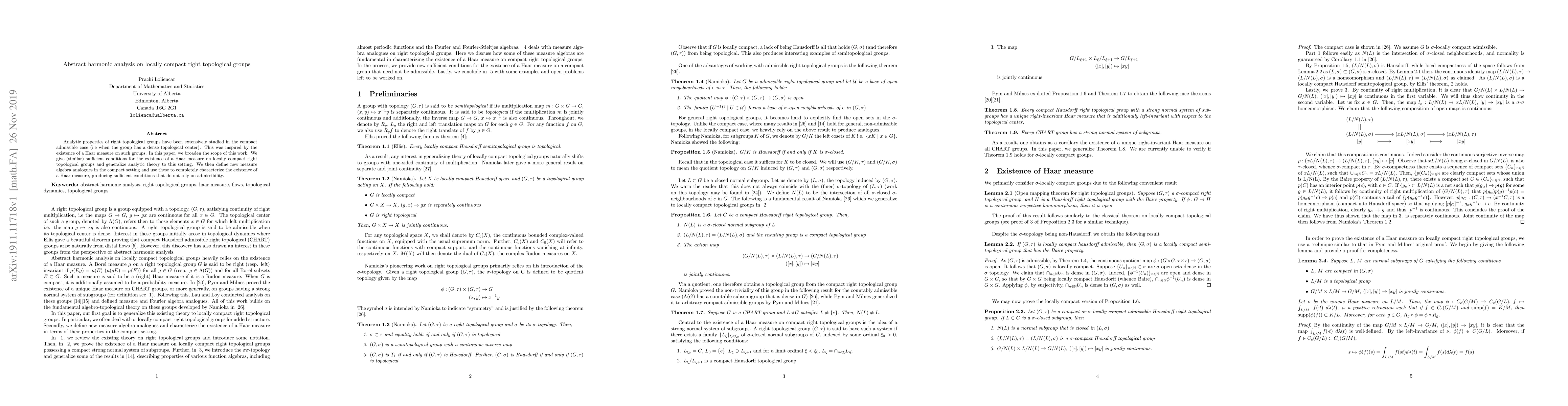 Analytic properties of right topological groups have been extensively studied in the compact admissible case (i.e when the group has a dense topological center). This was inspired by the existence of a Haar measure on such groups. In this paper, we broaden the scope of this work. We give (similar) sufficient conditions for the existence of a Haar measure on locally compact right topological groups and generalize analytic theory to this setting. We then define new measure algebra analogues in the compact setting and use these to completely characterize the existence of a Haar measure, producing sufficient conditions that do not rely on admissibility.