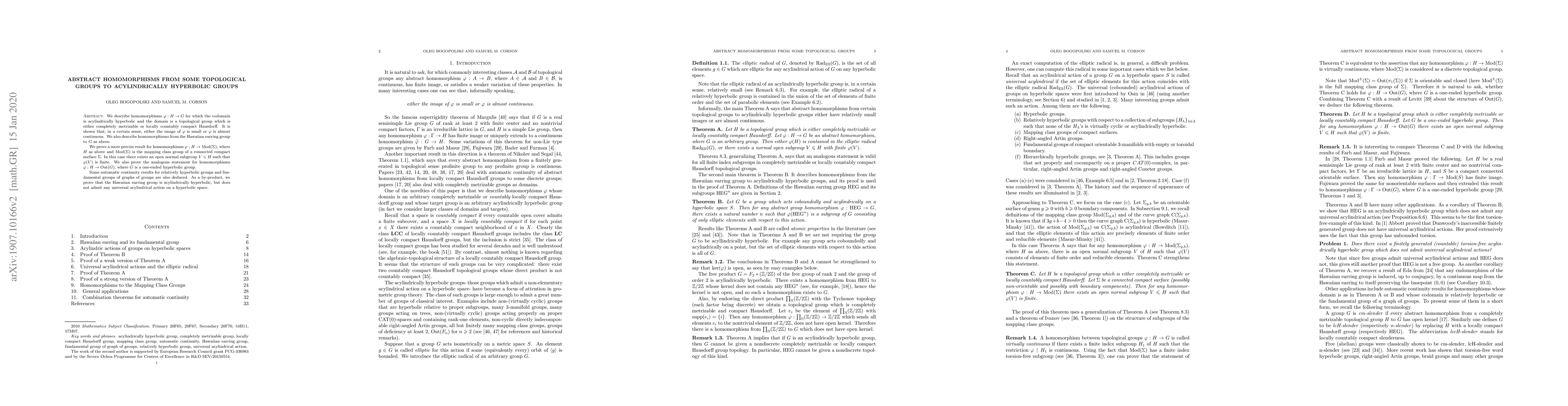 We describe homomorphisms $\varphi:H\rightarrow G$ for which the codomain is acylindrically hyperbolic and the domain is a topological group which is either completely metrizable or locally countably compact Hausdorff. It is shown that, in a certain sense, either the image of $\varphi$ is small or $\varphi$ is almost continuous. We also describe homomorphisms from the Hawaiian earring group to $G$ as above. We prove a more precise result for homomorphisms $\varphi:H\rightarrow {\rm Mod}(\Sigma)$, where $H$ as above and ${\rm Mod}(\Sigma)$ is the mapping class group of a connected compact surface $\Sigma$. In this case there exists an open normal subgroup $V\leqslant H$ such that $\varphi(V)$ is finite. We also prove the analogous statement for homomorphisms $\varphi:H\rightarrow {\rm Out}(G)$, where $G$ is a one-ended hyperbolic group. Some automatic continuity results for relatively hyperbolic groups and fundamental groups of graphs of groups are also deduced. As a by-product, we prove that the Hawaiian earring group is acylindrically hyperbolic, but does not admit any universal acylindrical action on a hyperbolic space.