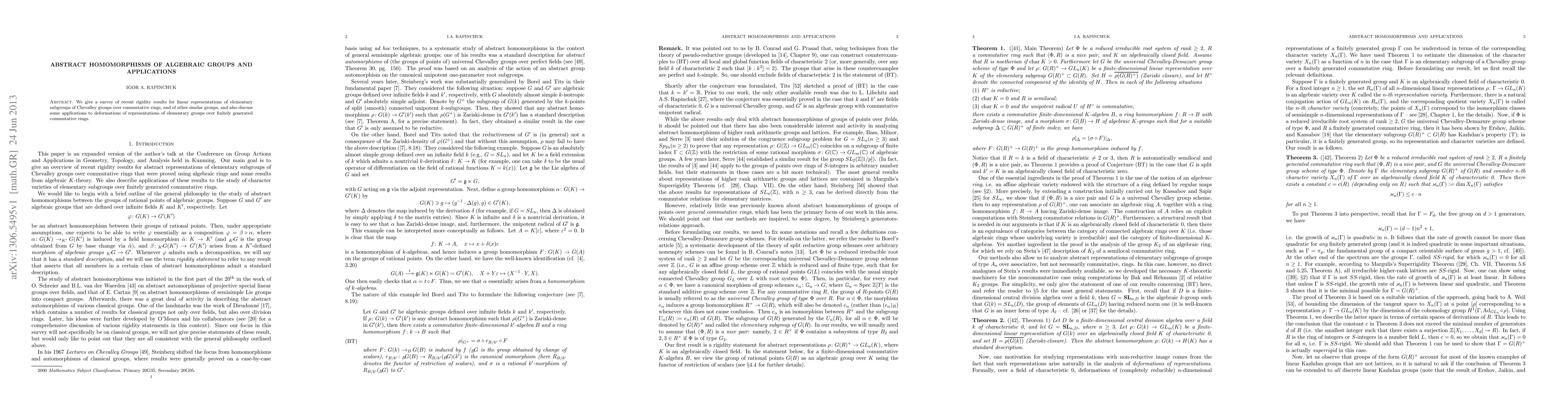 This paper provides an overview of recent research on abstract homomorphisms of algebraic groups, with a focus on their applications, presented at a 2012 conference in Kunming. The work discusses significant advances and implications in geometry, topology, and analysis.