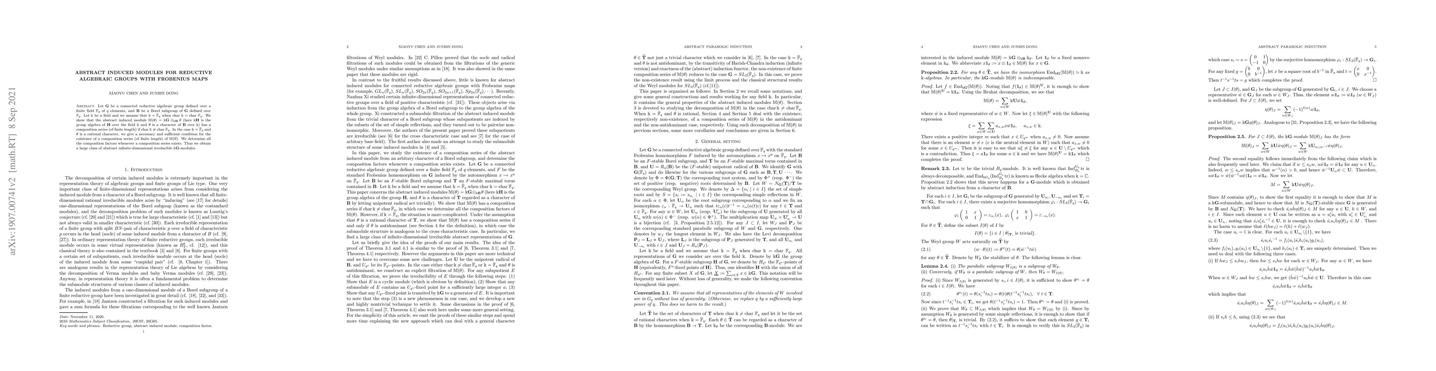 The paper shows that abstract induced modules for reductive algebraic groups with Frobenius maps have a composition series under certain conditions, providing a large class of infinite-dimensional irreducible modules.